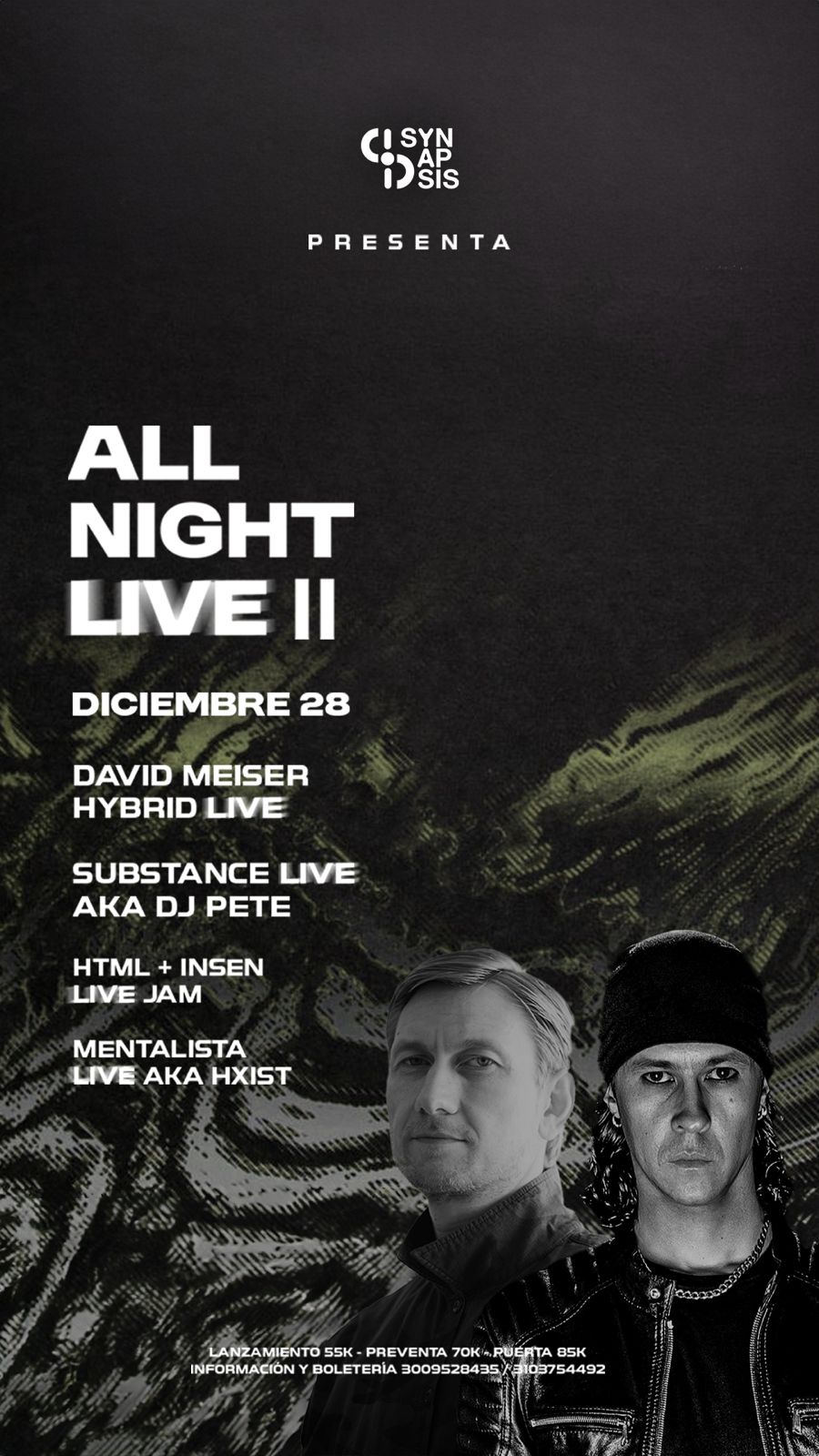 ALL NIGHT LIVE II LUGAR: SALON GOTICA 1 RIVIERA CENEXPO - SABADO 28 DE DICIEMBRE KILOMETRO 7 VIA ARMENIA LA TEBAIDA