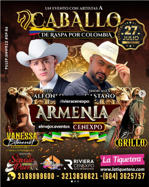 GRAN CONCIERTO DE RASPA POR COLOMBIA LUIS ALFONSO Y JHON ALEX CASTAÑO SABADO 27 DE JULIO COLISEO GRAN RIVIERA EN RIVIERA CENEXPO KILOMETRO 7 VIA ARMENIA - LA TEBAIDA Se celebro el 27 de julio en las instalaciones de Riviera Cenexpo, en el Coliseo Gran...